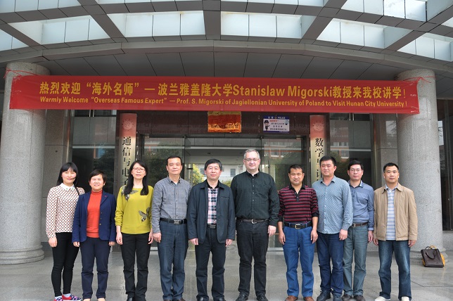 数学与计算科学学院院长肖翠娥主持项目启动仪式。国际交流处处长周桂平宣读了湖南省教育厅《关于下达2014-2015学年度湖南省“海外名师”项目计划及经费的通知》(湘教通〔2014〕309号)。项目负责人李云翔博士介绍了“海外名师”Stanislaw Migorski教授的基本情况。